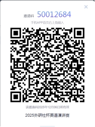(1)海选:9月12日前,实名注册并登陆学习通,加入课程《西安建筑科技大学英语演讲赛》(课程教师:裴蕾),加入班级“2025外研社杯英语演讲赛”(班级二维码如下图),在相应作业中以Strike the Waves为主题,以附件形式提交三分钟的英语演讲音频。