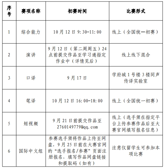 本届综合能力、笔译赛项初赛将采取线上参赛方式进行。